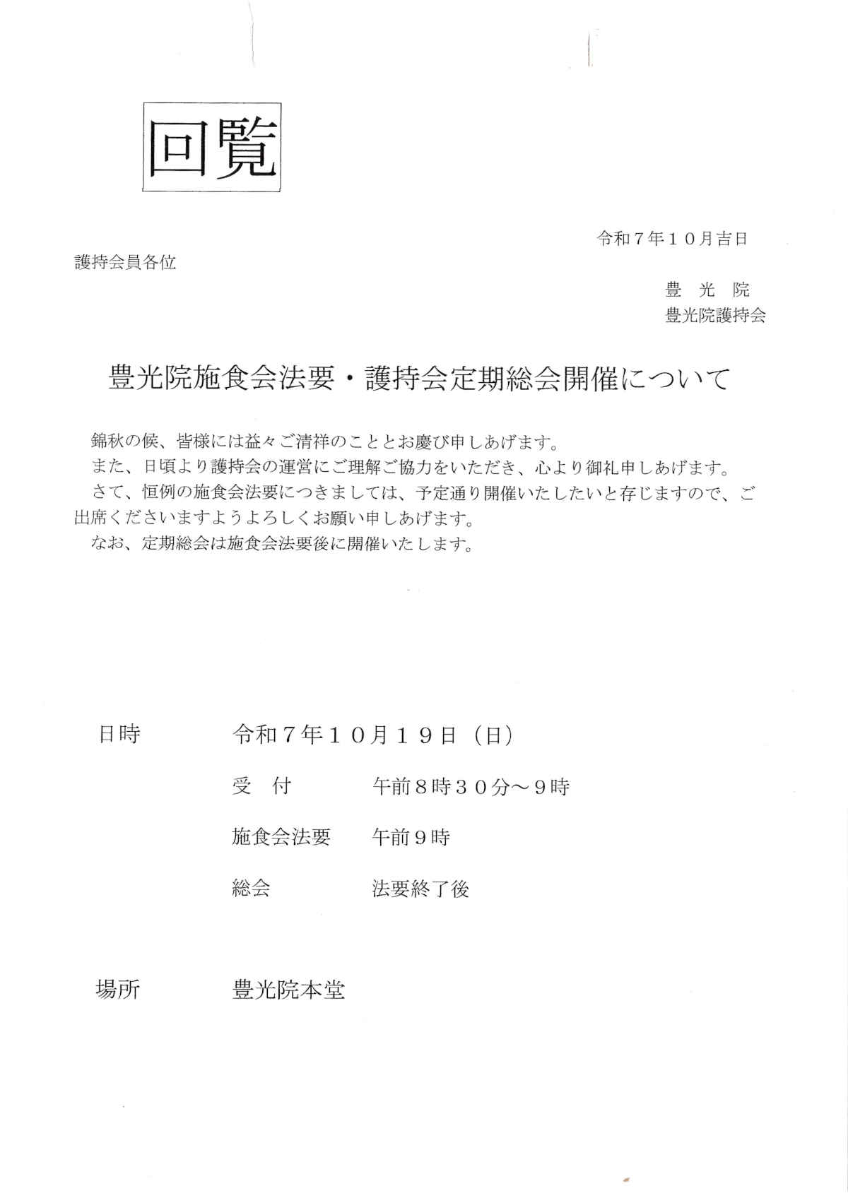 [豊光院護持会]施食会法要・定期総会開催について