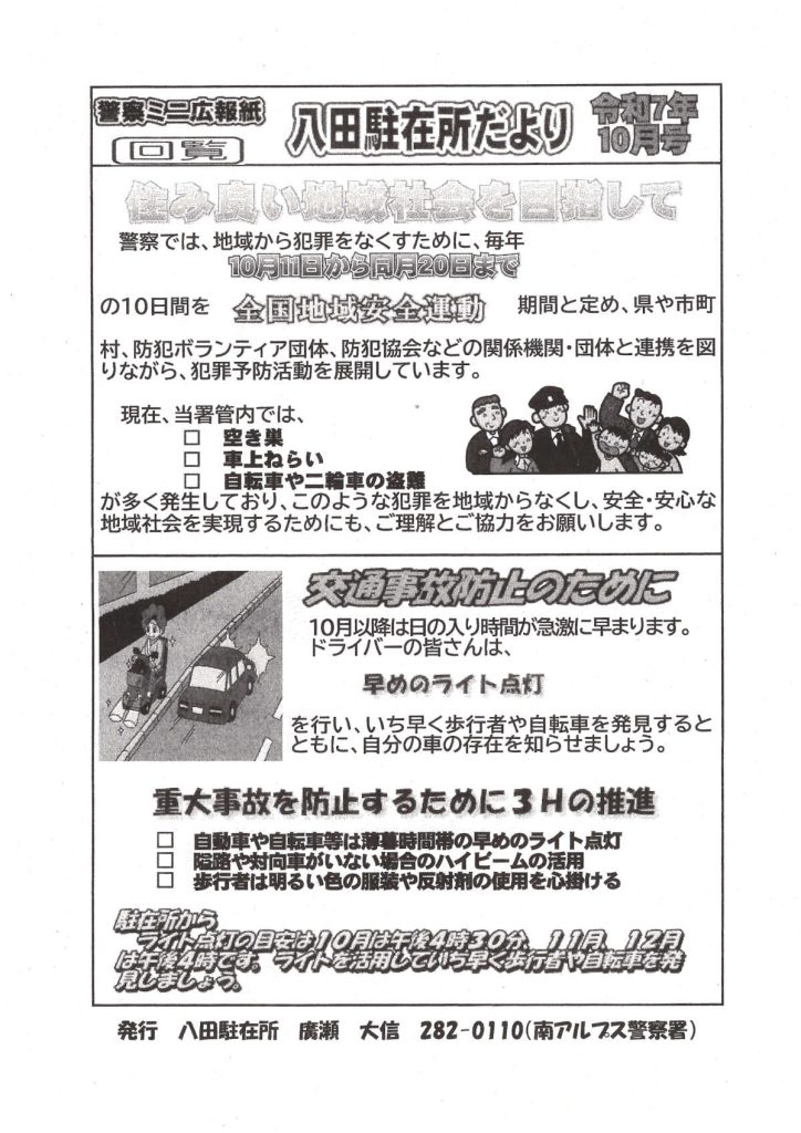 [南アルプス警察署]駐在所だより(令和7年10月号)