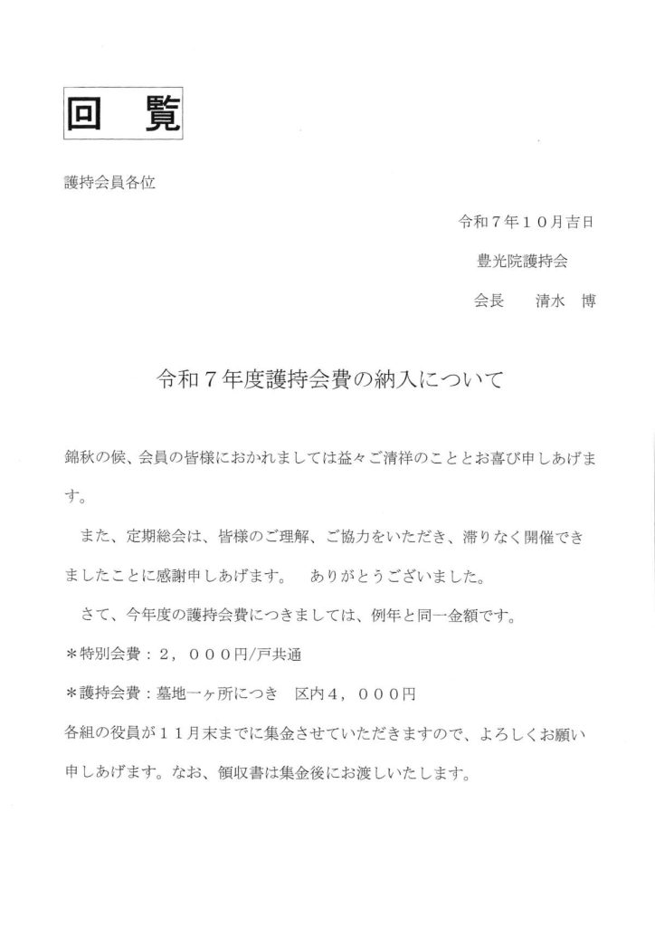 [豊光院護持会]令和7年度護持会費の納入について