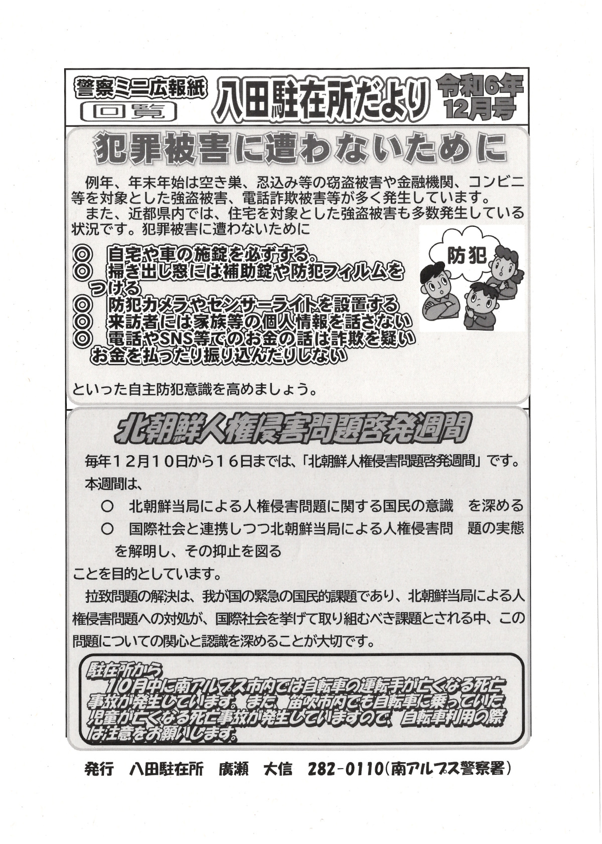 [南アルプス警察署]駐在所だより(令和7年12月号)