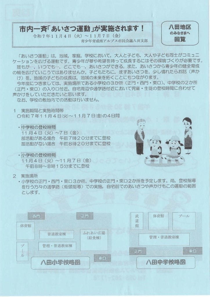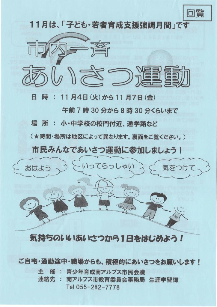 [青少年育成南アルプス市民会議]市内一斉あいさつ運動