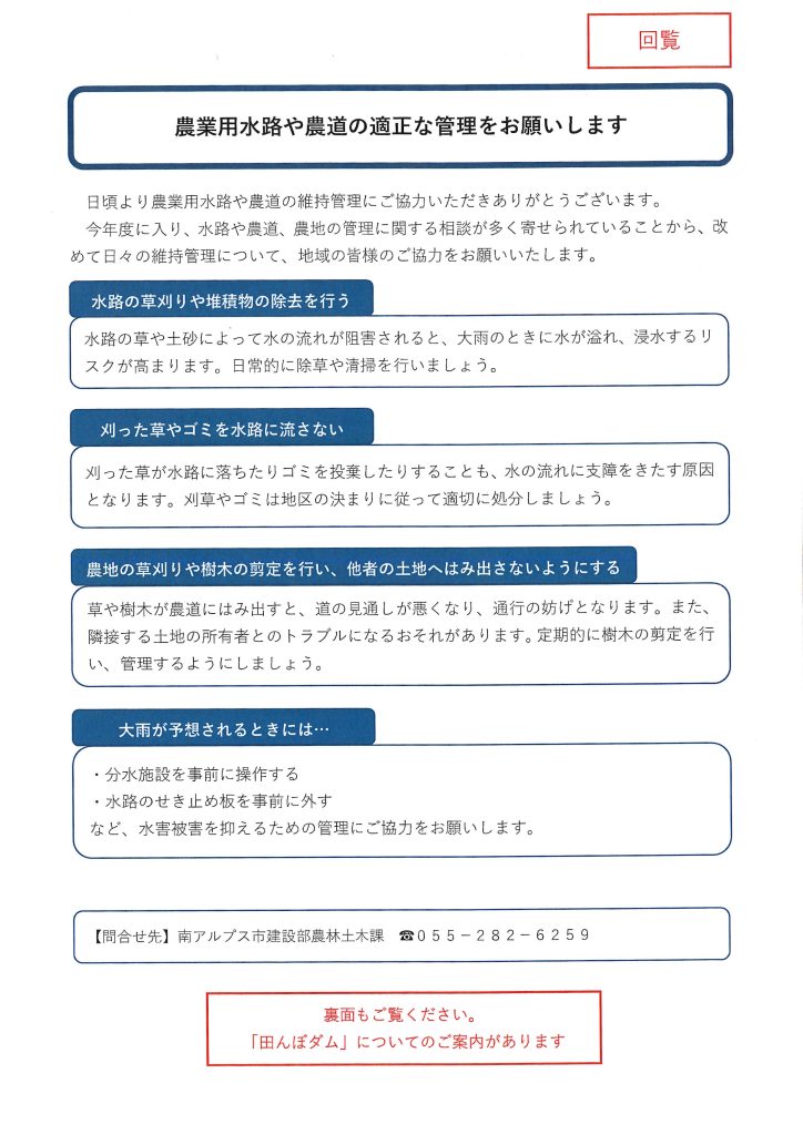 [市農林土木課]農業用水路や農道の適切な管理