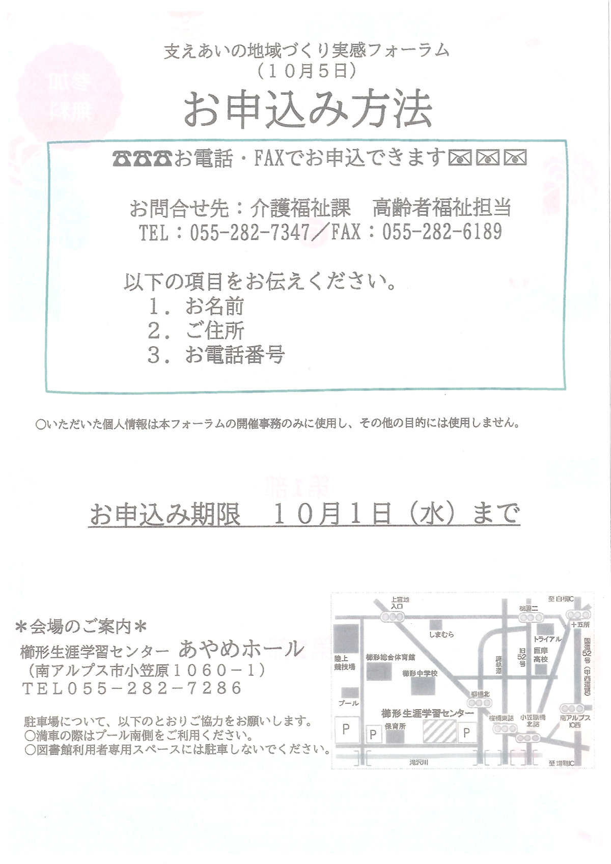お問い合わせ先:南アルプス市役所市民活動支援課