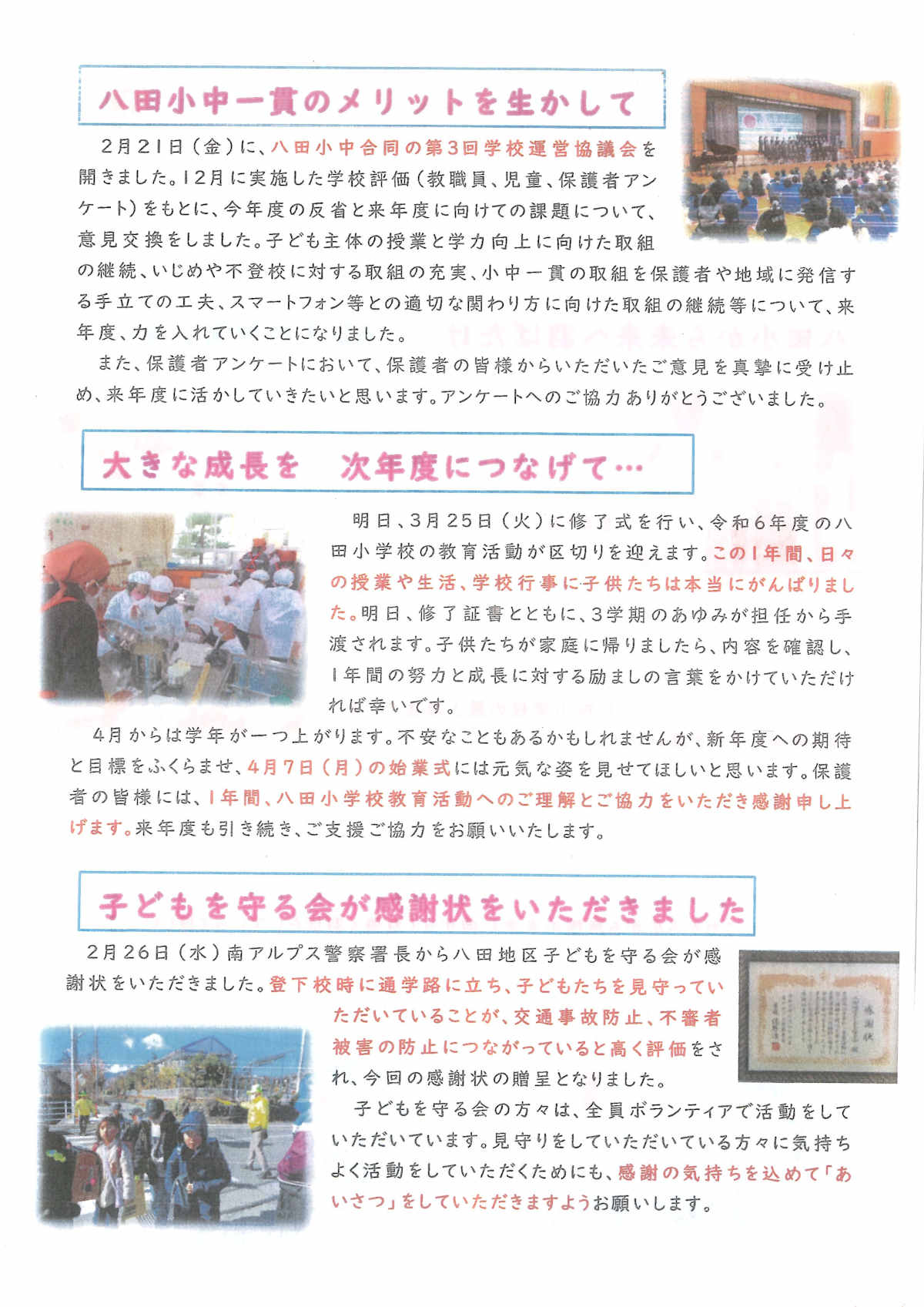 [八田小学校]学校だより「大望の鐘」(令和6年度No.11・R7年3月号)